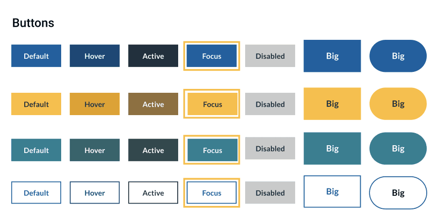 Starting with lcp’s wireframes and design comps, we conducted an interface audit to determine a set of core components that would be used consistently across the site. We created a component inventory which became a single source of truth to guide both design and development. The inventory described details for each component including naming, specific fields, taxonomies, and any design variations.