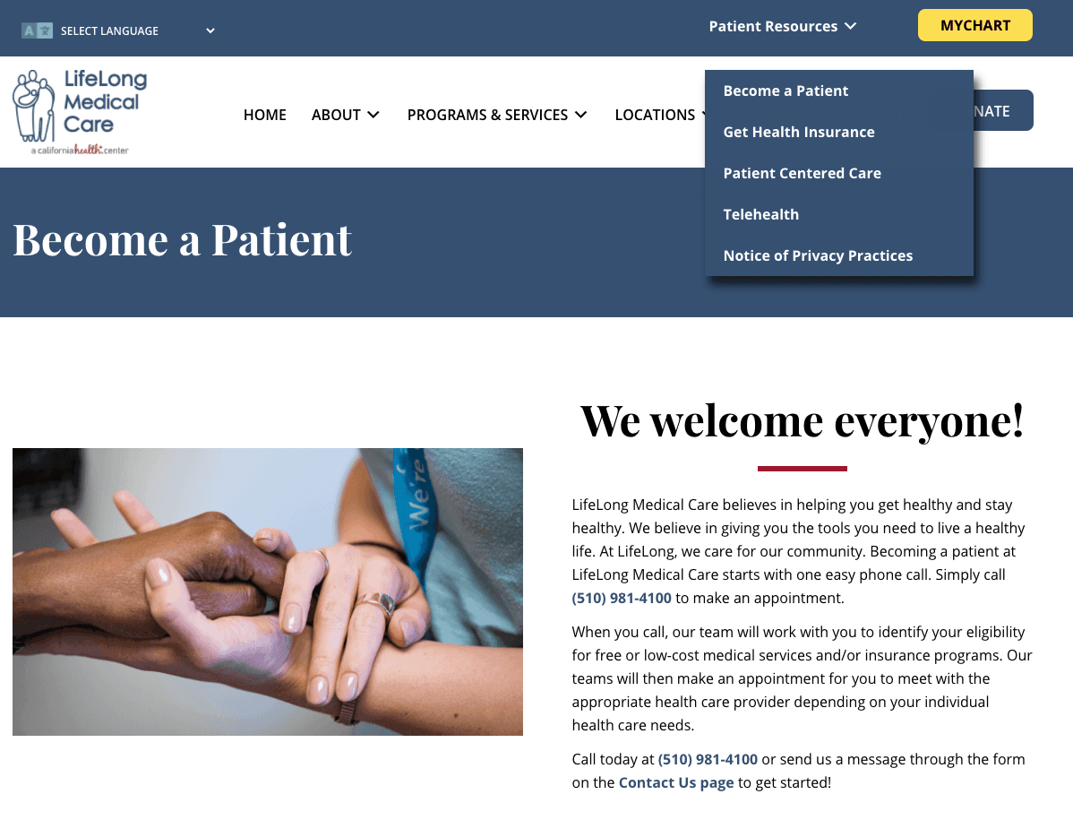 Community health centers serve populations under the greatest health threats, yet are the most under-resourced. Along with personnel and facility limitations, many lack the funding and support for an accessible, intuitive, and easy to maintain website. LifeLong was facing this issue when it reached out to Exygy about rebuilding its site. They had three primary needs: