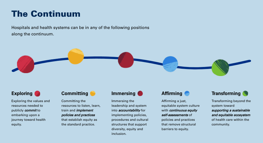 Health inequity is an undeniable cause of persistent health disparities across the U.S. Marginalized populations, namely BIPOC communities, do not have equal access to high-quality education, housing, employment, healthcare, and other resources which lead to higher rates of health disparities. Many leaders are looking for support in addressing the inequities that live within health systems, for example: physicians and staff don't reflect the diversity of communities being served, there are gaps in understanding healthcare, and there are investment gaps in health systems serving under-resourced communities.