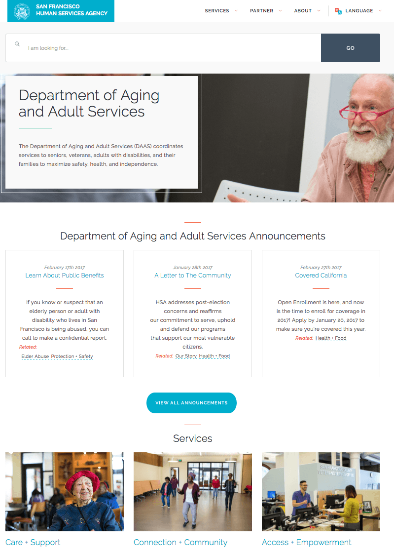 After a successful completion of the Digital Strategy Report, HSA renewed their partnership with Exygy. We’ve implemented recommendations from the report to iteratively design and build the new sfhsa.org platform. The redesign provides information and services through an multilingual, user focused experience. Under the hood, the 508 compliant site is accessible on all major browsers and devices. The new website guarantees that HSA services will be easily accessible to those 20,000 residents who need it the most. In addition, HSA staff and leadership is empowered to update content in a WYSIWYG CMS that is tailored to their needs. The website was launched in October 2017.