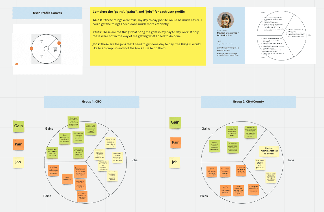 Day 4: Rapid feedback and defined success. Our designers presented the initial designs to the participants, and received feedback. This design sprint was crucial in helping us define what data needed to be collected to ensure the tool was successfully meeting the needs of users. The agreed-upon success metrics included fresh/local data, storytelling, effective call to actions, and racial equity.
