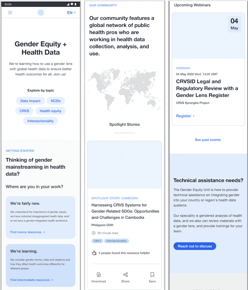 Established in 2021, the Gender Equity Unit was starting from the ground up when it began partnering with Exygy. Their dedicated team works to support statisticians and demographers integrating gender into their health systems and they needed a website to support and share their work. With no prior website foundation, they needed Exygy to not only design and build the website but also conduct extensive user research and provide a content strategy for housing all of the information on the website.